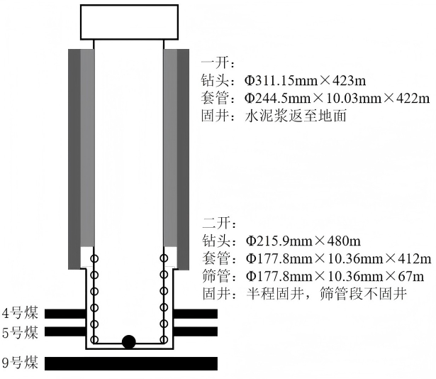 二开固井:(1)筛管段均不固井,但产套段采用分级箍实现半程固井技术。(2)水泥浆体系采用密度为1.80±0.1g/cm3的早强水泥浆体系。(3)要求水泥返出地面,若水泥未封固至井口,则井口打水泥浆封固。